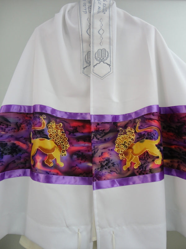 The Purple Lion of Judah Tallit, Men's Tallit, Bar Mitzvah Tallit, Hebrew Prayer Shawl