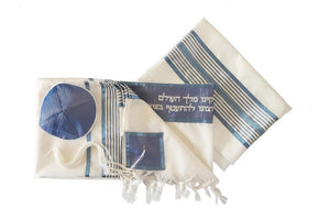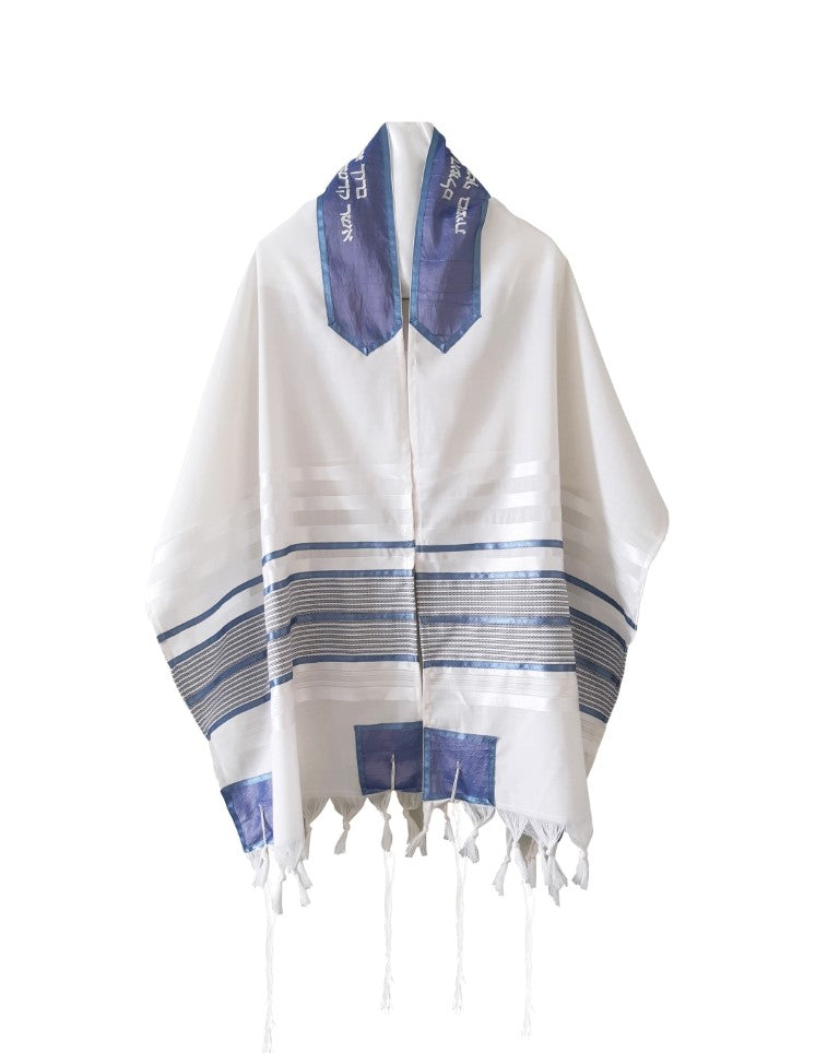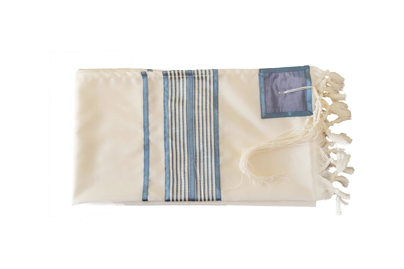 A classic Galilee Silk White and Blue Tallit, Bar Mitzvah Tallit Set, Modern Tallit that is impressive and unique.