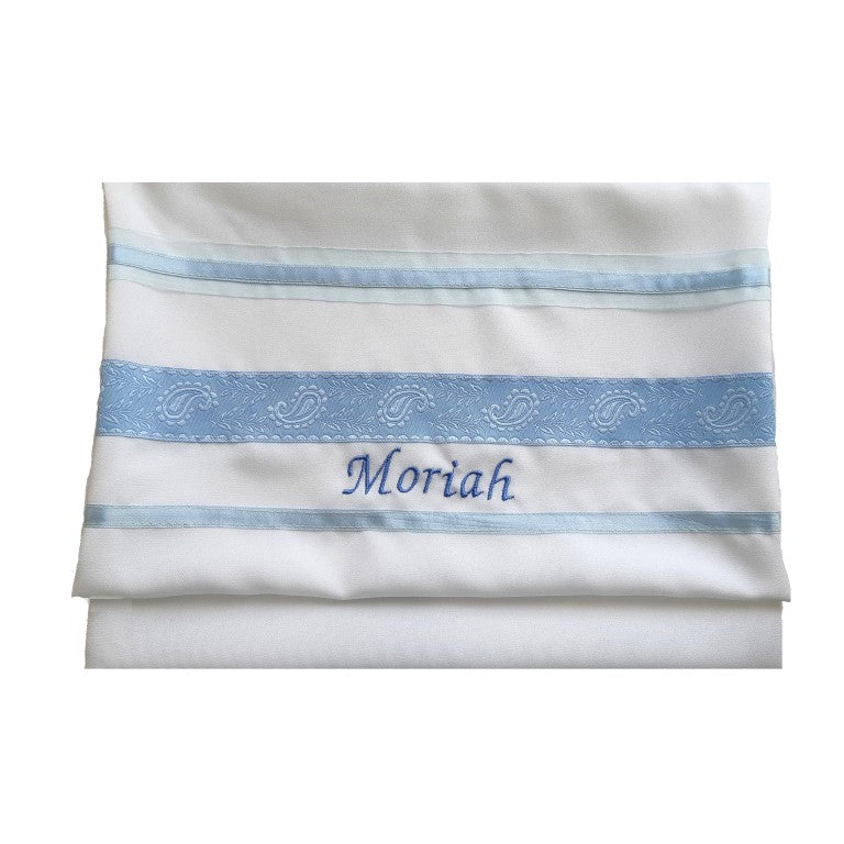 Blue Paisley Tallit for women, Bat Mitzvah Tallit, Sheer Tallit for Girl