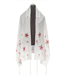 White with Red flowers Silk Tallit for women, Girl's Tallit, Bat Mitzvah Tallit, Women Tallit, Tallit for Girl