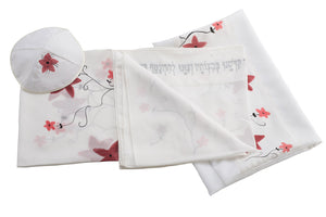 Red flowers silk tallit set, bat mitzvah tallit, girls tallit, womens tallit,tallit for women, tallit for girl, feminine tallit