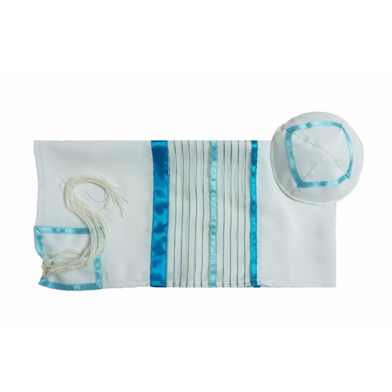Opaque Tallit for Women with Teal Colored Elements, Bat Mitzvah Tallit, Girl Tallit