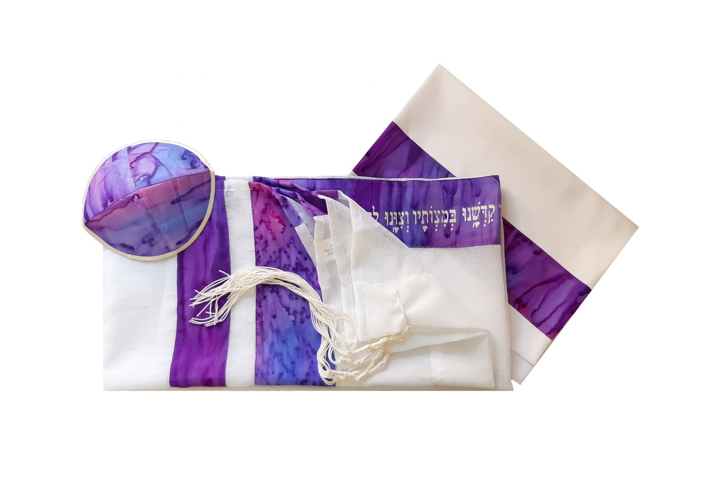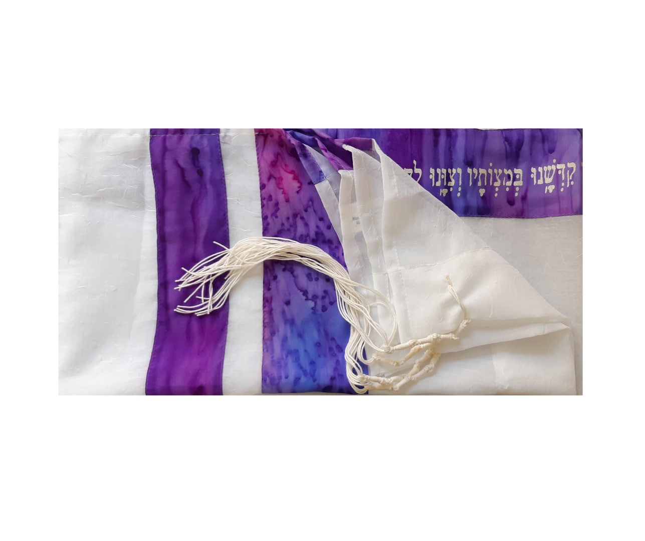 Purple and Lilac Blend Silk Stripes Girls Tallit, Bat Mitzvah Tallit Set, Women's Tallit