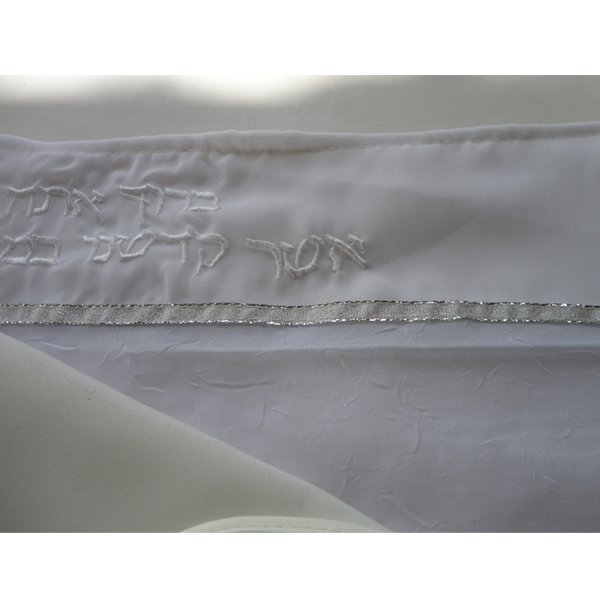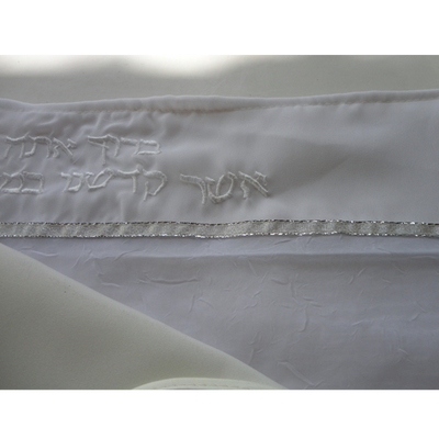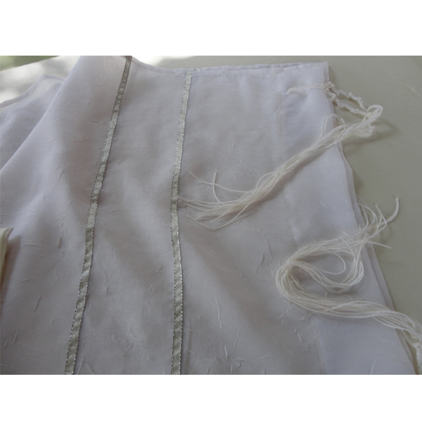 The White and Silver sheer Tallit for Women, Bat Mitzvah Tallis, Tallis for Girl is made of a sheer base with Silver ribbons decorations.