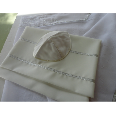 Like our other Bat Mitzvah tallits and tallit for Women it is sold in a set of Tallit, with a matching Talit bag and kippah.The design pattern is repeated on the bag.