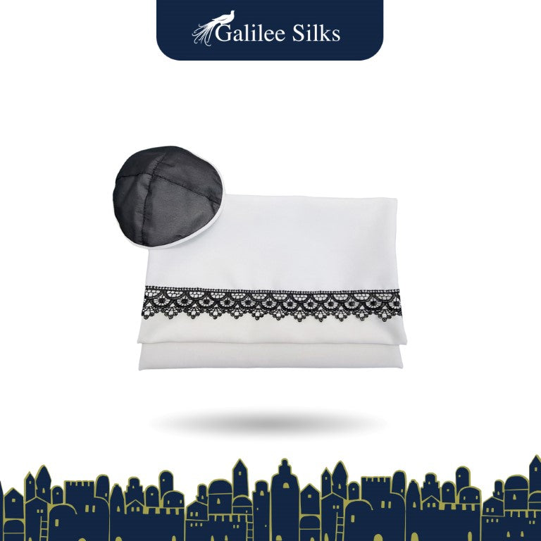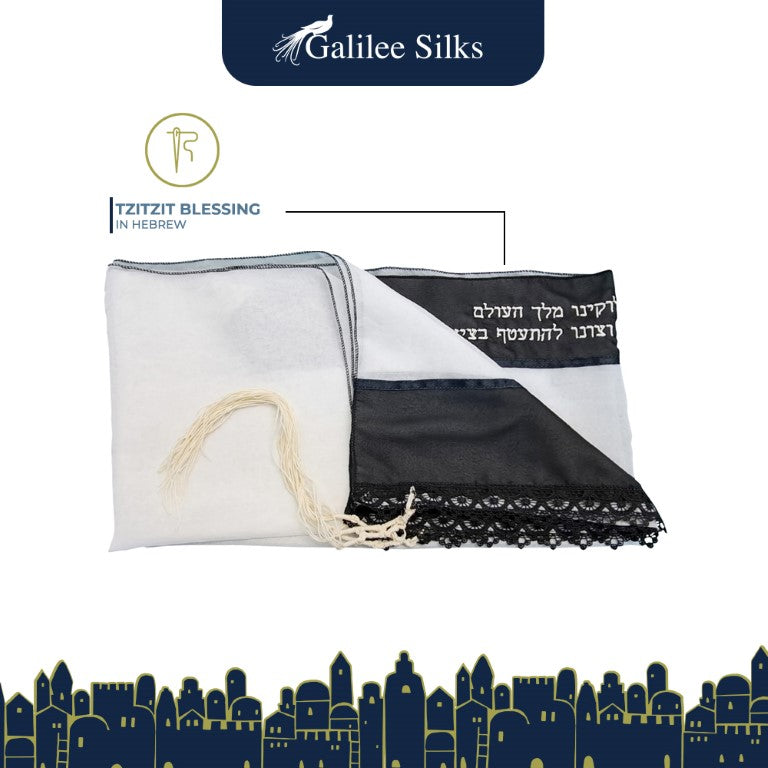The Black lace at the bottom of this Lace Tallit for Girl, Bat Mitzvah Tallit makes it minimalistic yet luxurious!