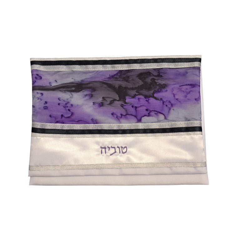 Purple Marble Hand Painted Silk on Wool Tallit, Bar Mitzva Tallit, Tzitzit, Jewish Prayer Shawl bag