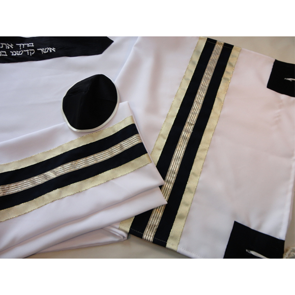 Comes with matching kippah and tallit bag.