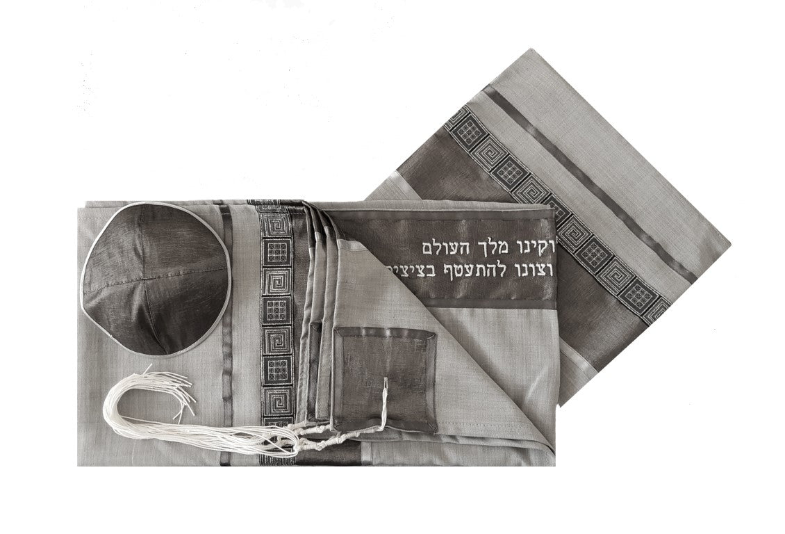 Distinguished Gray Tallit with Geometric Design, Bar Mitzvah Tallit Set, Modern Tallis