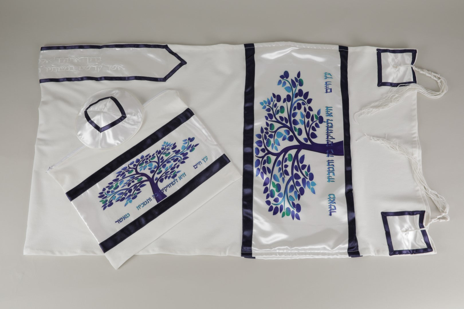Enchanting Blue Tree of Life Tallit Prayer Shawl, Bar Mitzvah Tallit Set, Tallis Tzitzit