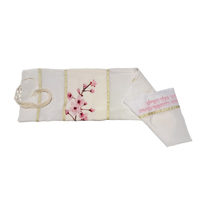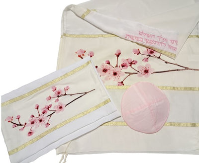 Cherry Blossom Silk Tallit, Girls Tallit Tzitzit, Bat Mitzvah Tallit Set