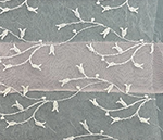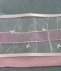 Opaque base, with waved pink edged organza ribbon and delicate floral pattern.