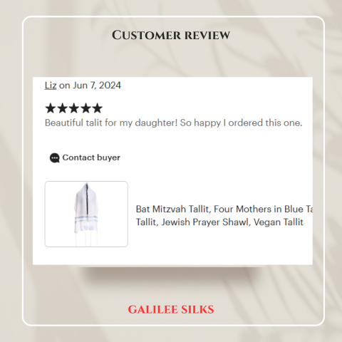 The Four Mothers in Blue Bat Mitzvah Tallit, Women's Tallit - Feminine Tallit, Tallit for Women is a Symbolic Tallit with embroidered names of the four mothers.