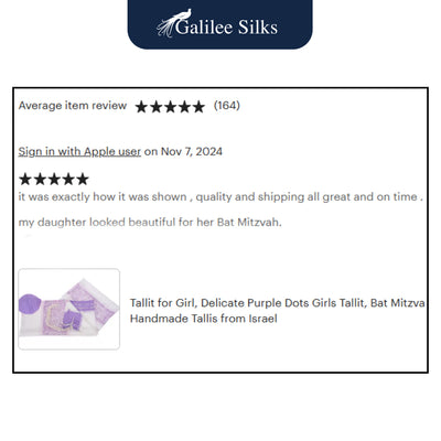 • Like other Galilee Silks products, it is sold in a set with a matching Tallit bag and kippah.
