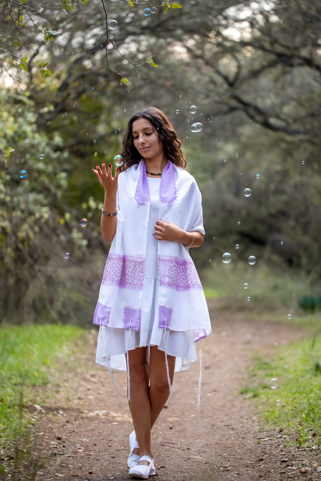 Galilee Silks girl tallis women tzitzit bat mitzvah lilac talit