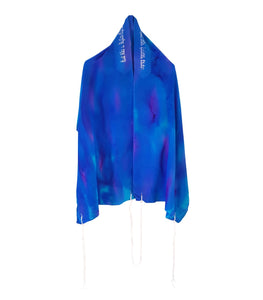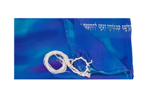 Hand Painted Blue Shades with Turquoise and Purple Silk Tallit for Women, Bat Mitzvah Tallit, Girl's Tallit, Women's Tallit