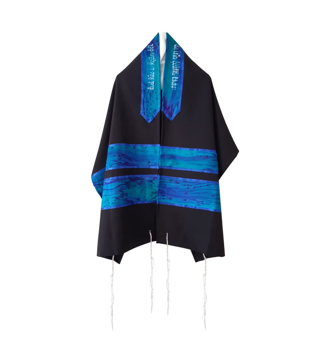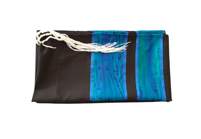 Turquoise and Blue Hand Painted Silk Stripes Black Tallit for Women, Bat Mitzvah Tallit, Girls Tallit, Tzitzit