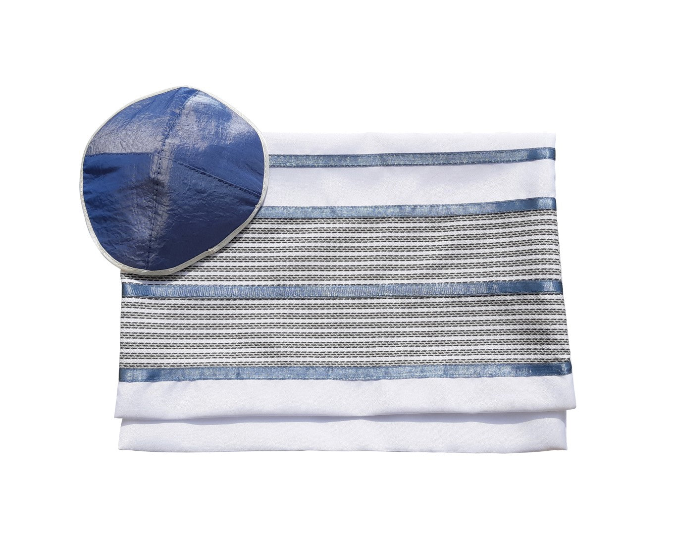 Comes with a matching kippah and tallit bag.