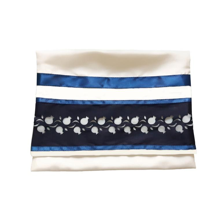 The Blue Pomegranates Tallit Bag has an exclusive design of Pomegranates pattern, Laser-Cut and accompanied with Blue Satin ribbons.