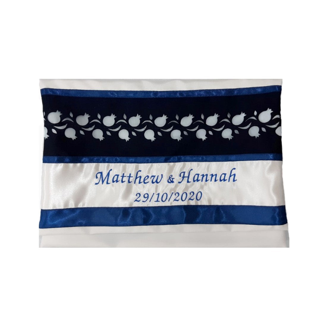 Blue Pomegranates Tallit Bag, Bar Mitzvah Tallit Bag, Personalized Tallit Bag