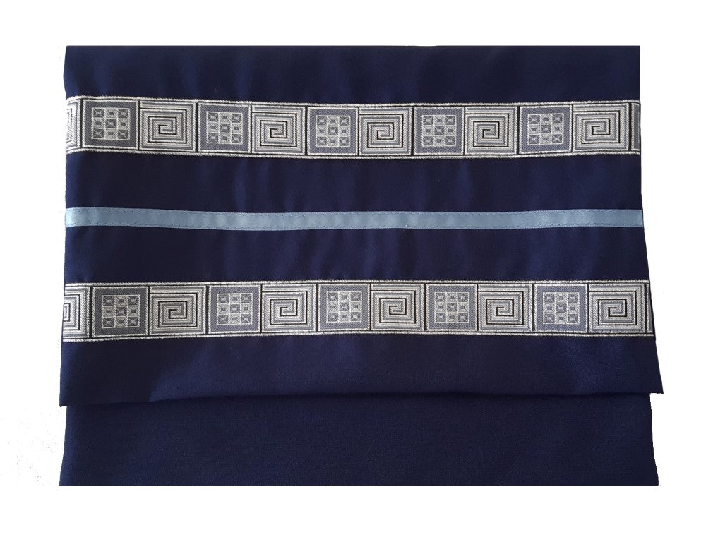 This Navy Blue Bar Mitzvah Tallit set is decorated with a Unique Geometric Pattern.