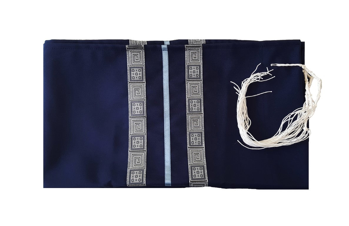 Navy Blue Tallit, Bar Mitzvah Tallit Set with Geometric Design, Modern Tallit, Tzitzit Tallis