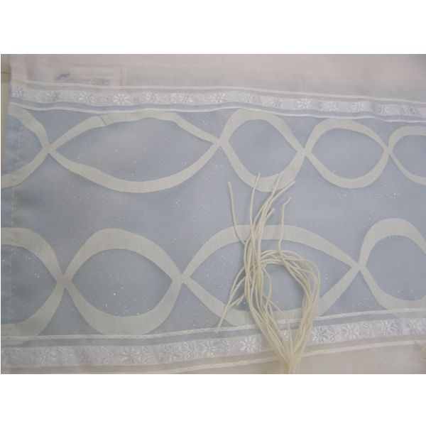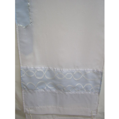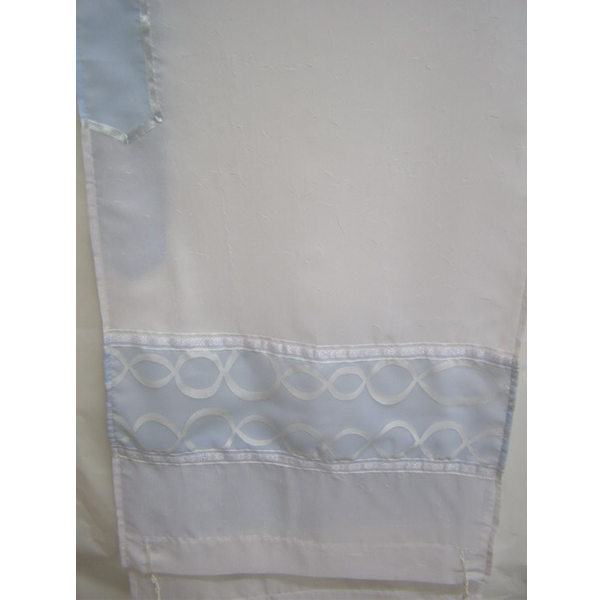 This beautiful tallit is made of sheer, white polyester and features an embroidered atara. It measures 20" by 72". It's the perfect gift for your Bat Mitzva girl or a woman of any age.