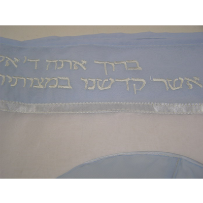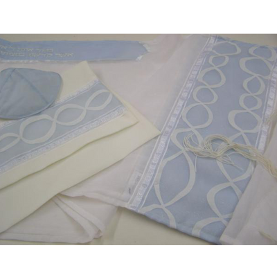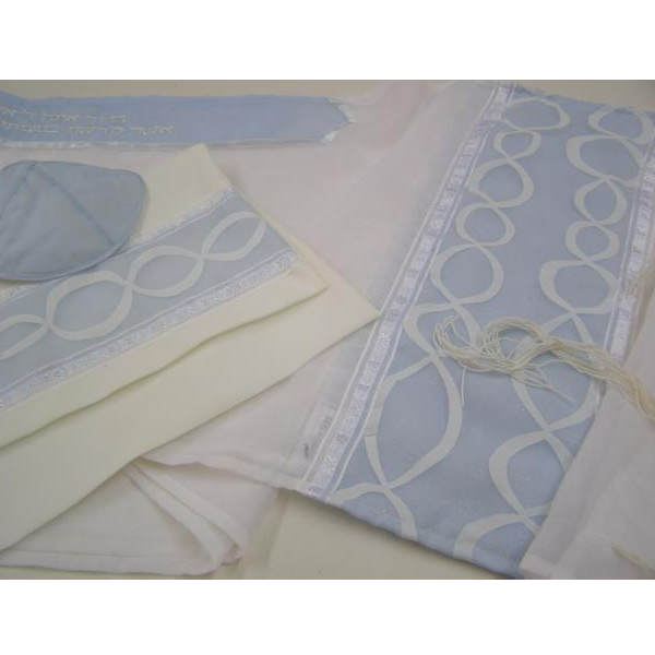 Light Blue Tallit for women With Wave Decoration, Bat Mitzvah Tallit, Girls Tallit