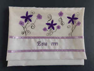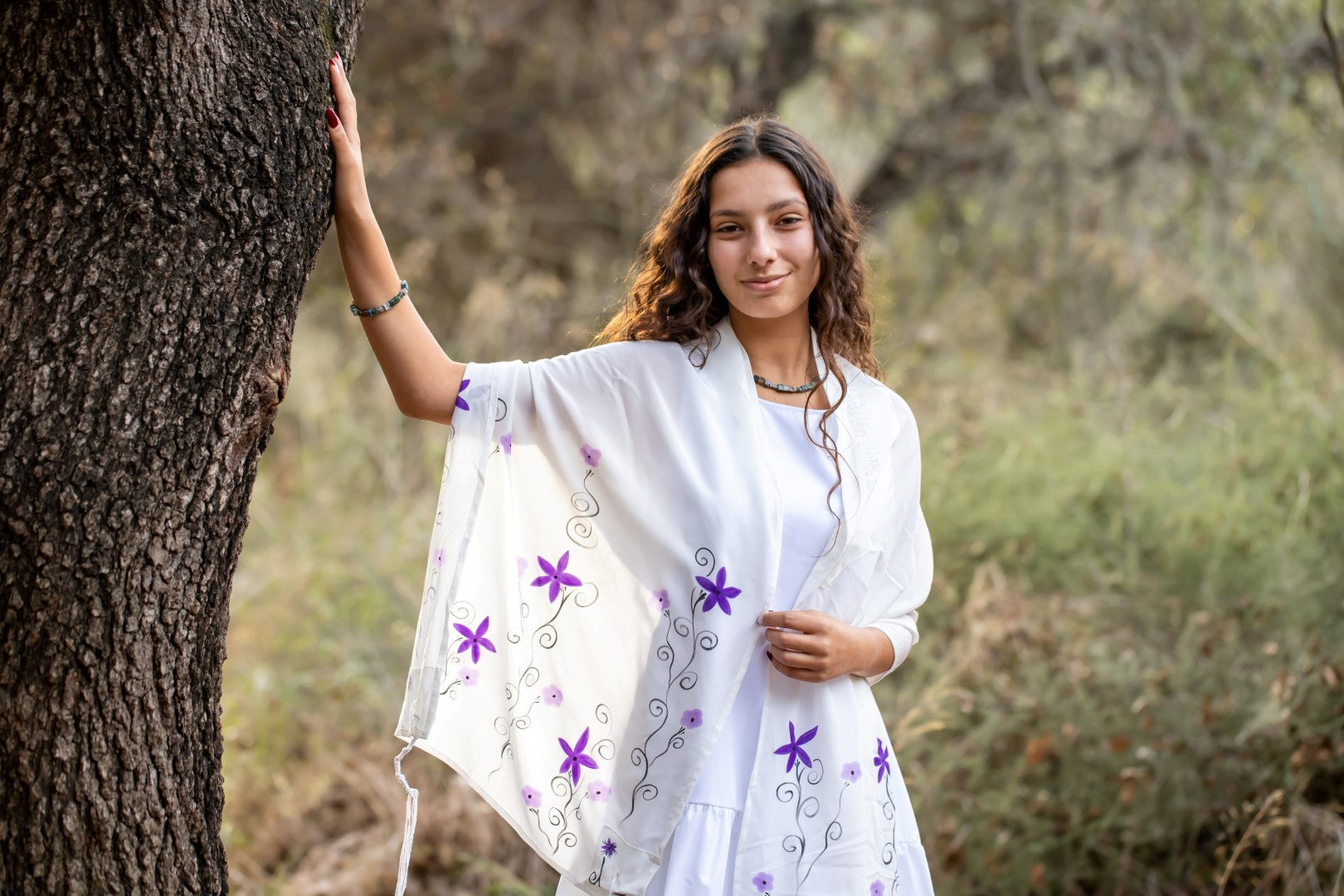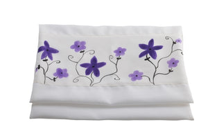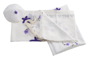 Purple Flowers Silk Tallit for girl, Bat Mitzvah Tallit